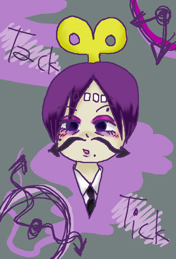 ちくたくって綴りこれで合ってたかな…? 時計パパことクロックマスターです。髭とると全然おっさんに見えない; というか化粧しているみたい。彼、かなり好きです。 親ばかというか…。偉大な時の支配者という割には結構へたれてたり、 可愛いですvあんちゃんによく相談を持ちかけているようですが、 ミイラ父ちゃんとも仲良しであって欲しいです、パパ同士。