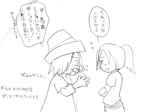 ガールに付け髭疑惑をかけられるあんちゃん。