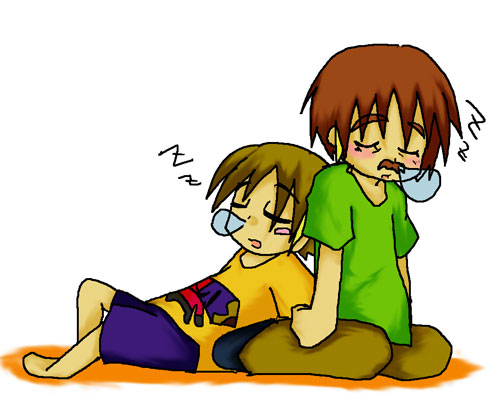テール君の寝る体制が明らかにおかしいですね; この2人は息子、父親みたいな関係が良いです! まあ、息子にいじられる(苛められる)お父ちゃんもどうかと 思いますがね^^;テール君のシャツのプリントに 見覚えのある方は挙手!(笑)