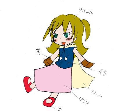 鞠男物語の長老大好きオリキャラ、リリちゃん。 最初に描き始めた時のだいたいのデザイン。で、鉛筆でモノクロで描いたときに 色はこんな感じと指定した通りに色塗ってみた。 髪の毛はさすがにマントとかぶるのでやめ。 今との相違点はマントがない事、スカートが白。 なんかミスがあるけど気にしない!